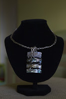 Colier creat din sarma argintata inoxidabila si sarma auri gilt care fiind imbinate dau un efect deosebit. Ele suntimpletite pe un inel de sticla deosebit de frumos. Se poarta la baza gatului, dar poate fi si dat jos si purtat pe un lantisor lung